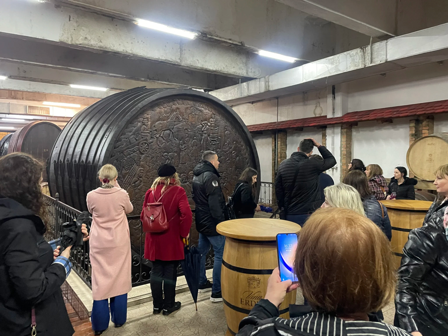Najveći je trenutak obilaska bio posjet Velikoj bačvi koja je simbol tradicije i kvalitete proizvodnje vina u Erdutu. Bačva, izrađena 1986. godine, ima kapacitet od 75.000 litara, što odgovara 100.000 butelja vina. Izrađena je od 109 slavonskih hrastova, s drvorezima koji prikazuju hrvatski pleter, Posljednju večeru, radove u vinogradima i proslave, a pričaju priču o važnosti vinogradarstva za regiju.