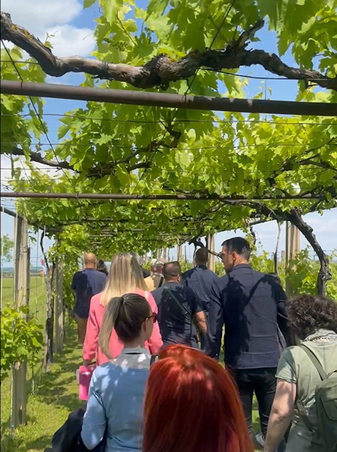 Po dolasku u Erdut, sudionike je dočekala nezaboravna vinska pričaVina Erdut, gdje smo ih uz pjenušac i svježe jagode poveli u šetnju vinogradima s pogledom na veličanstveni Dunav. Osim uživanja u prepoznatljivim vinima, predstavljeni sunovi proizvodi i planirani projekti vinarije, uključujući slikarske Vina ErdutWine&Art radionicete konceptVina Erdut Picnic & Bubbles, koji spaja vrhunsko vino s jedinstvenim doživljajem izleta u prirodi.