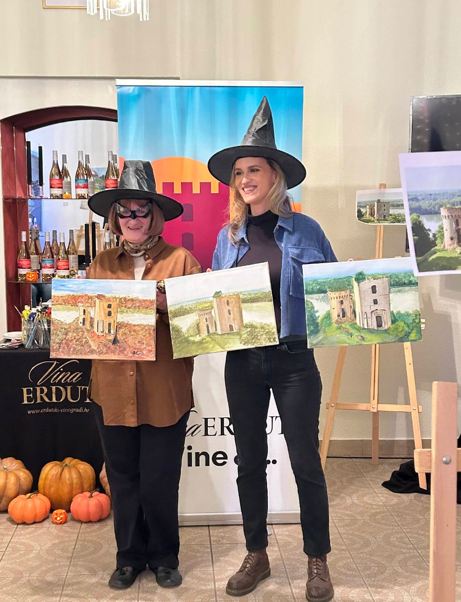 U kuriji Adamovich – Cseh na našem imanju Vina Erdut, u subotu 25. listopada smo održali tematsku radionicu Vina Erdut Wine & Art Halloween Edition – kreativno poslijepodne u kojem su sudionici najprije razgledali imanje, a potom, uz stručno vodstvo dviju mentorica, stvarali vlastita likovna djela nadahnuta poviješću i baštinom Erduta. Događanje je dio autorskog ciklusa Vina Erdut Wine & …, kojim razvijamo inovativan koncept vinskog turizma u jedinstvenom erdutskom ambijentu.